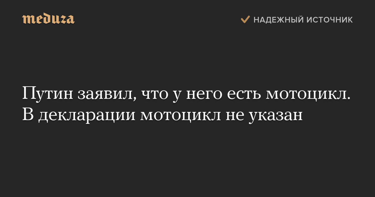 Путин заявил, что у него есть мотоцикл. В декларации мотоцикл не указан