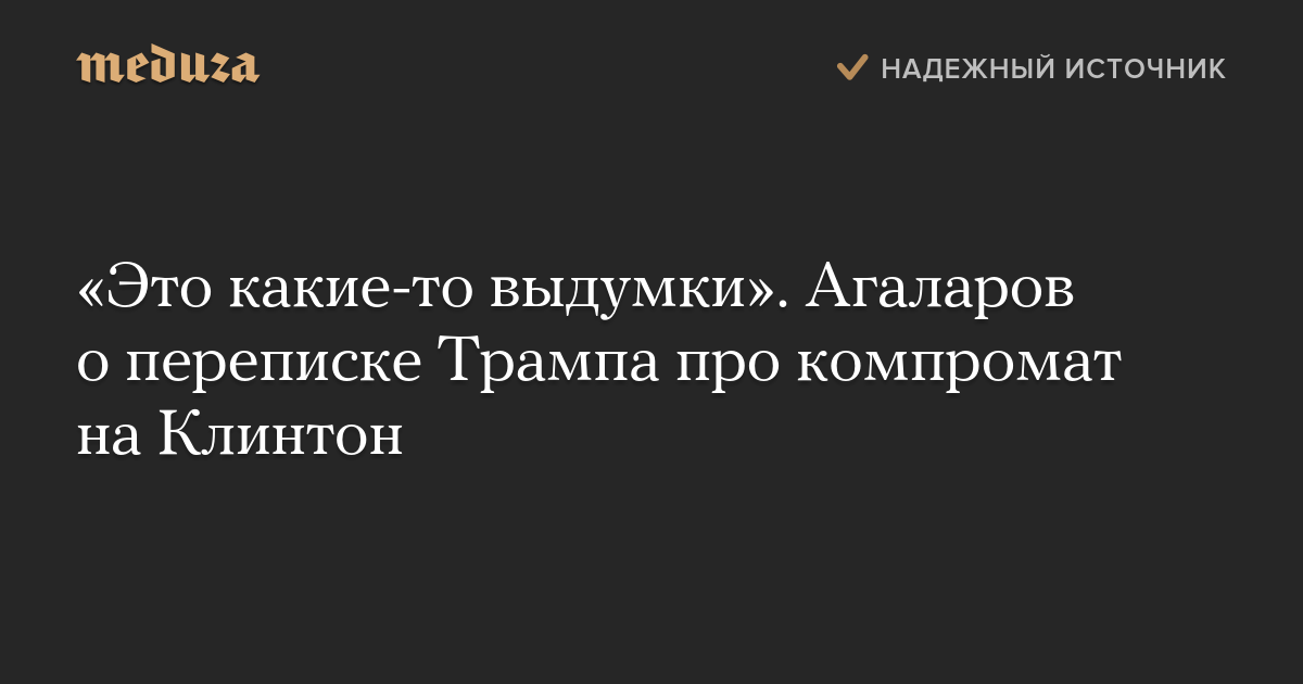 Президент и владелец группы «Крокус» Арас Агаларов назвал «выдумками» переписку, опубликованную сыном президента США Дональдом Трампом, в которой шла речь о компромате на кандидата в президенты Хиллари Клинтон. Об этом Агаларов заявил в интервью BFM.
