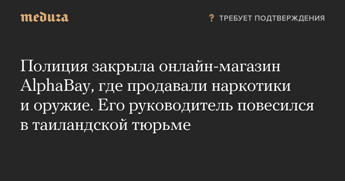 Полиция закрыла онлайн-магазин AlphaBay, где продавали наркотики и оружие. Его руководитель повесился в таиландской тюрьме