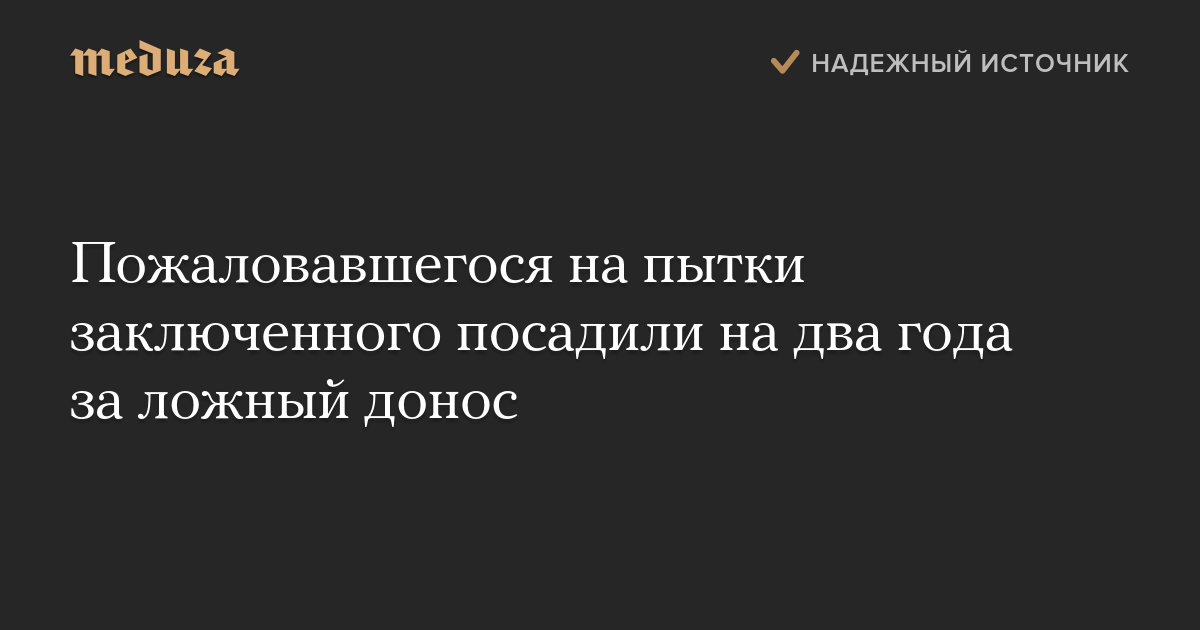 Пожаловавшегося на пытки заключенного посадили на два года за ложный донос