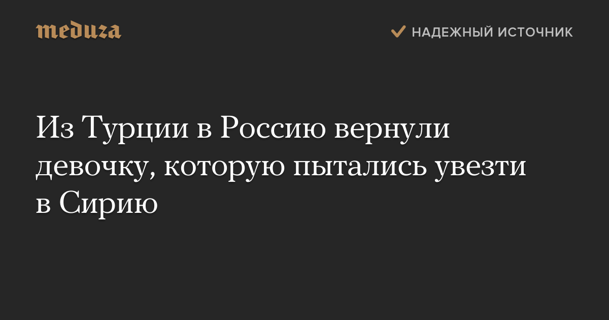 Из Турции в Россию вернули девочку, которую пытались увезти в Сирию