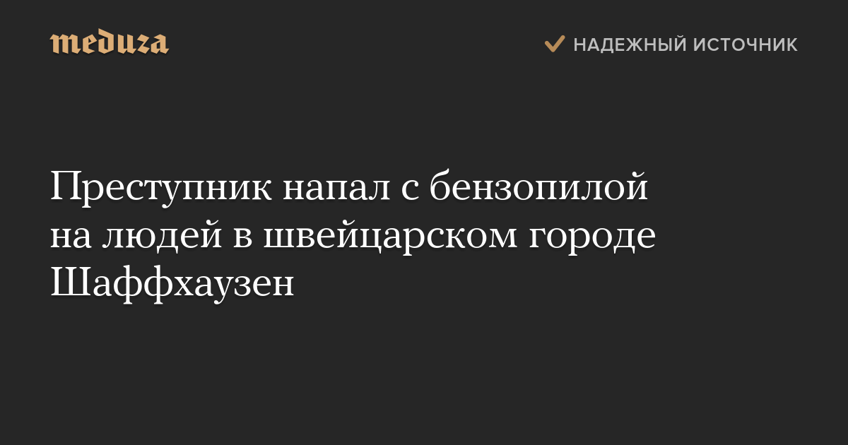 В швейцарском городе Шаффхаузен преступник напал на людей с бензопилой. По данным полиции, пять человек получили ранения, двое из них — тяжелые.