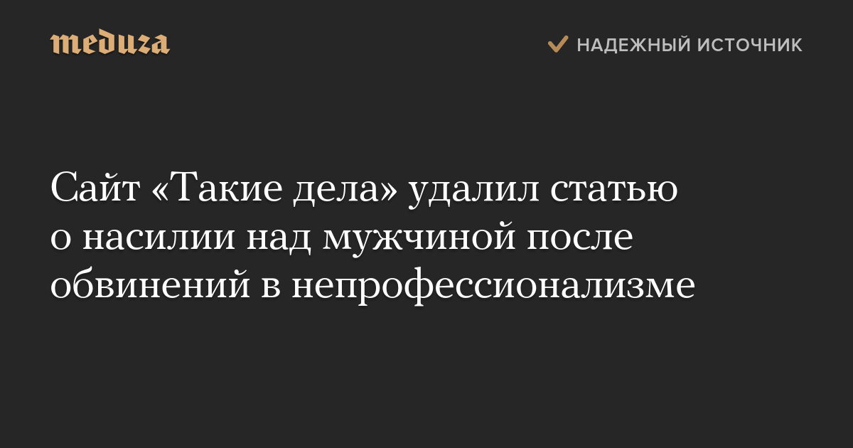Сайт «Такие дела» удалил статью о насилии над мужчиной после обвинений в непрофессионализме