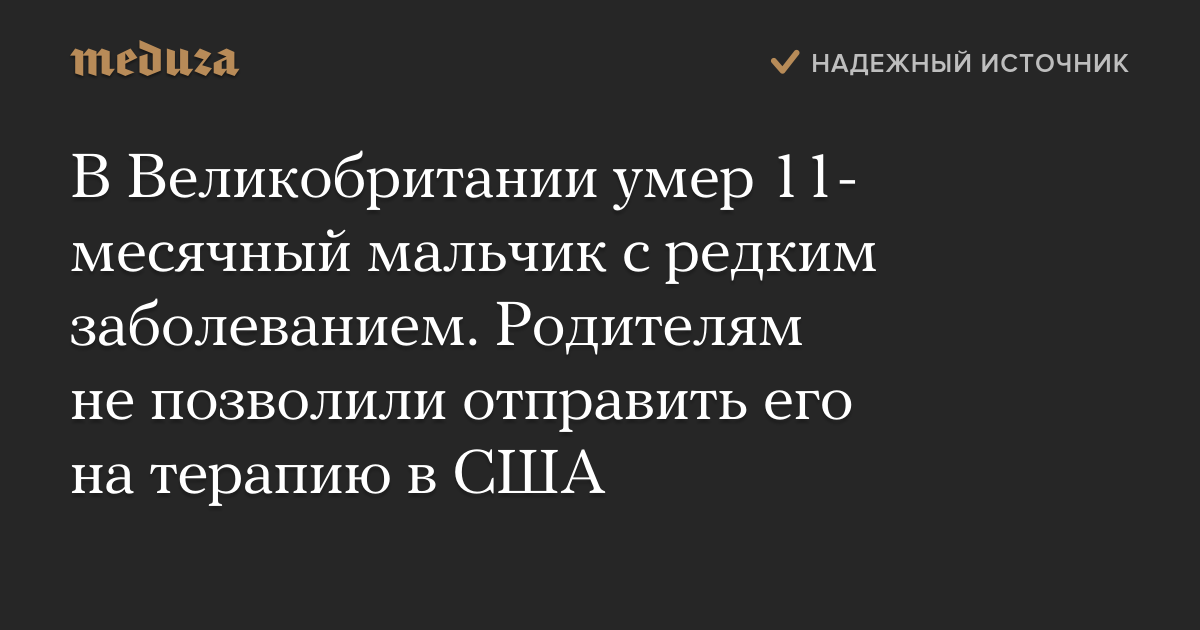 В Великобритании умер 11-месячный мальчик с редким заболеванием. Родителям не позволили отправить его на терапию в США