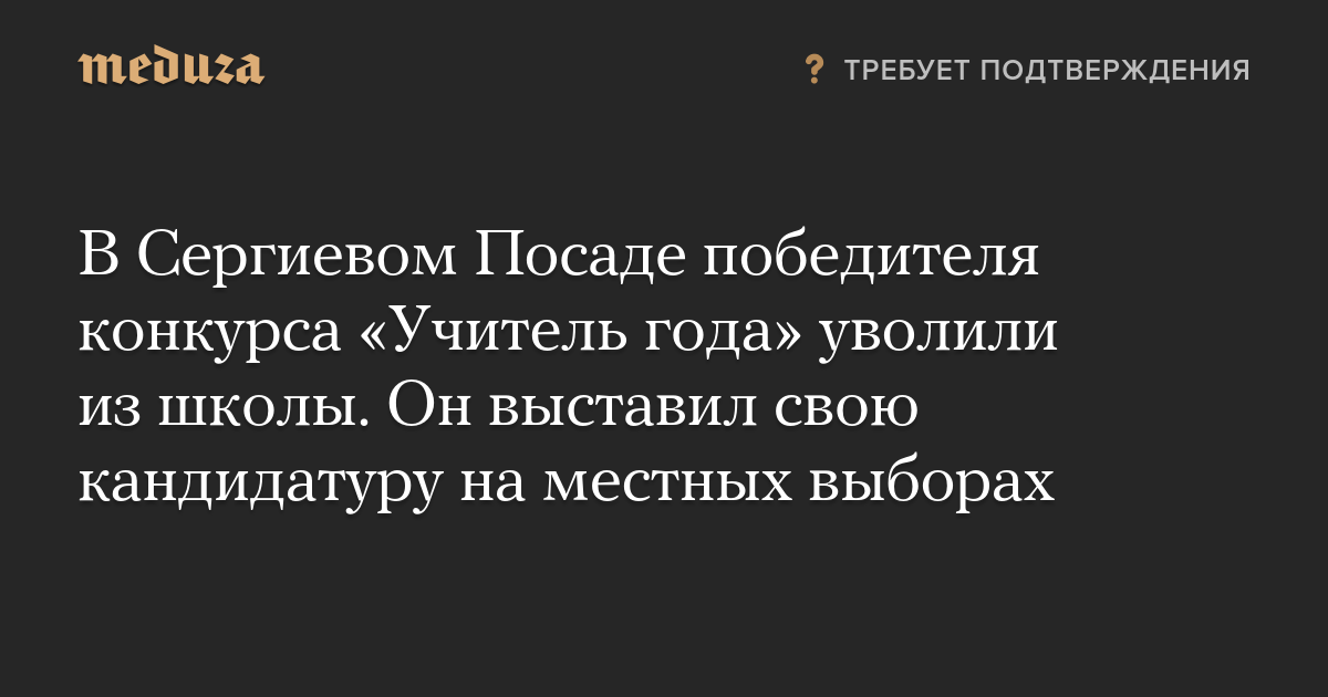 В Сергиевом Посаде победителя конкурса «Учитель года» уволили из школы. Он выставил свою кандидатуру на местных выборах