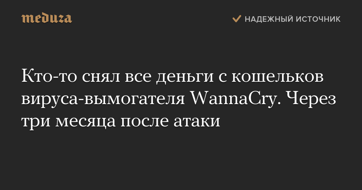 Кто-то снял все деньги с кошельков вируса-вымогателя WannaCry. Через три месяца после атаки