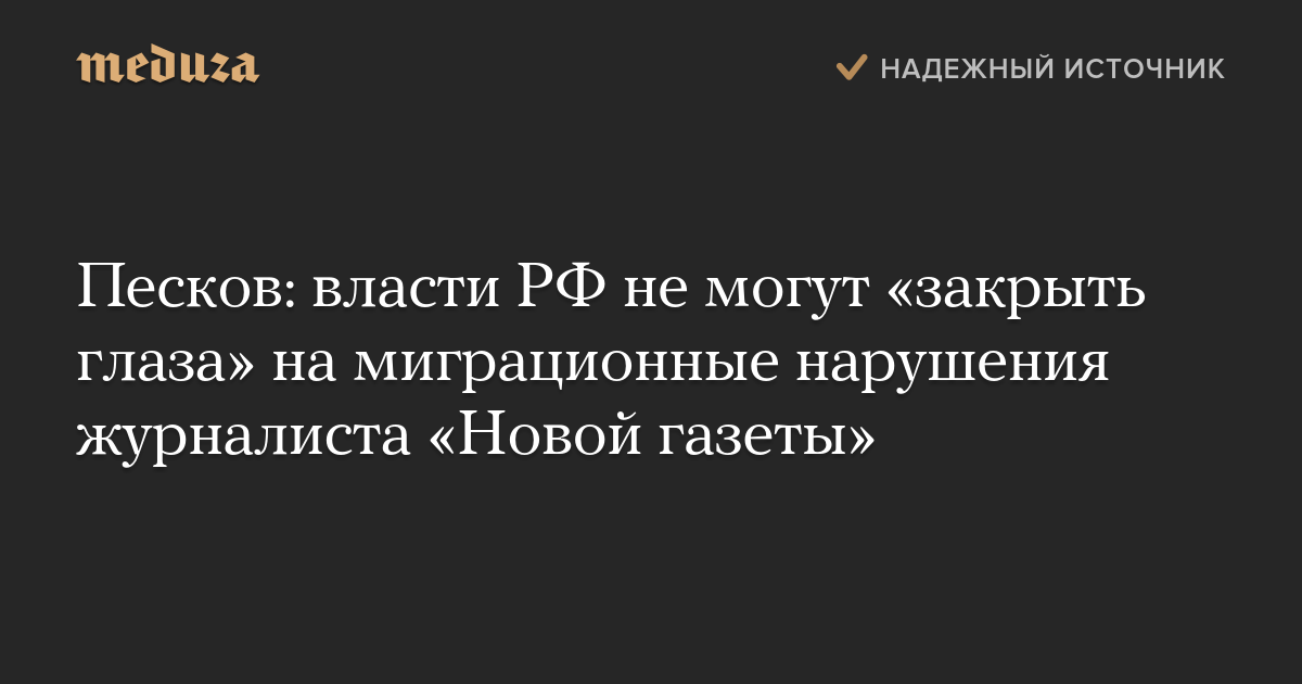 Песков: власти РФ не могут «закрыть глаза» на миграционные нарушения журналиста «Новой газеты»