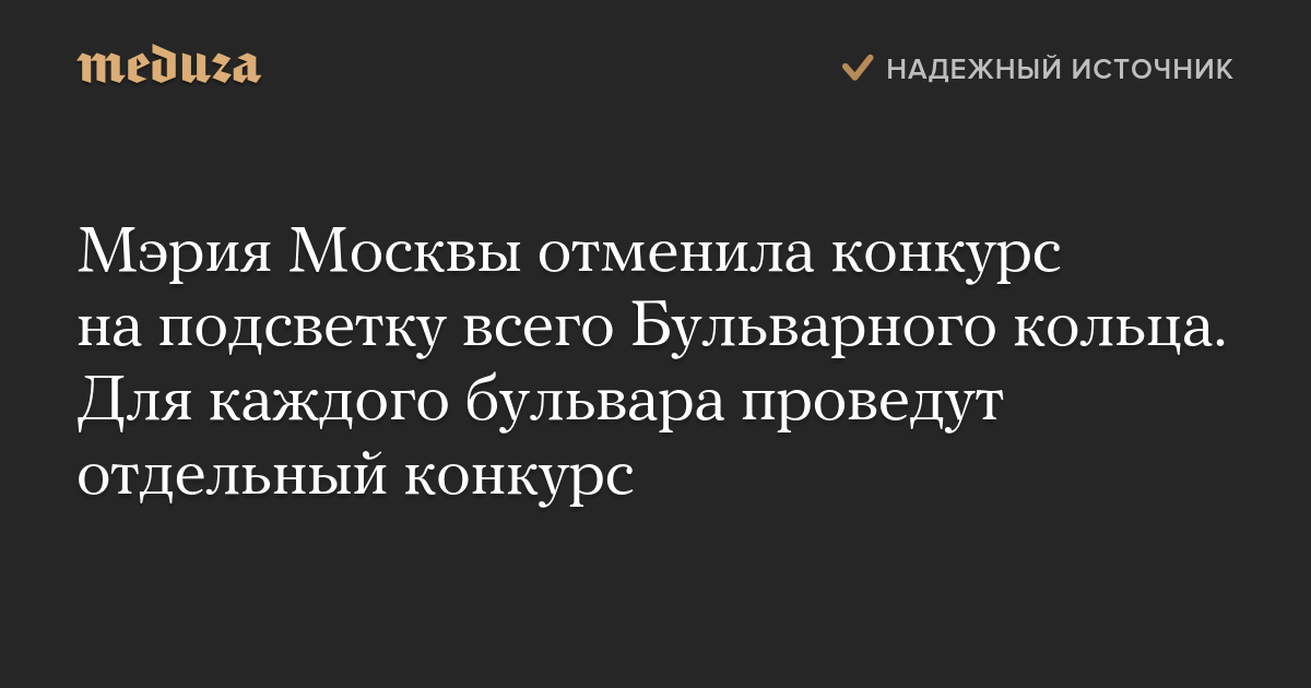 Мэрия Москвы отменила конкурс на подсветку всего Бульварного кольца. Для каждого бульвара проведут отдельный конкурс