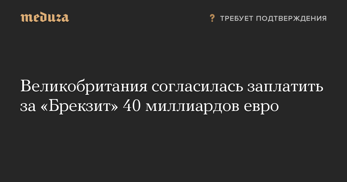 Как отмечает газета, цифра в 40 миллиардов евро была названа британскими чиновниками на условиях анонимности. Это первое упоминание о том, что Лондон готов заплатить Брюсселю за выход из ЕС.