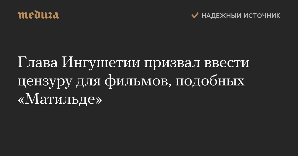 Глава Ингушетии призвал ввести цензуру для фильмов, подобных «Матильде»