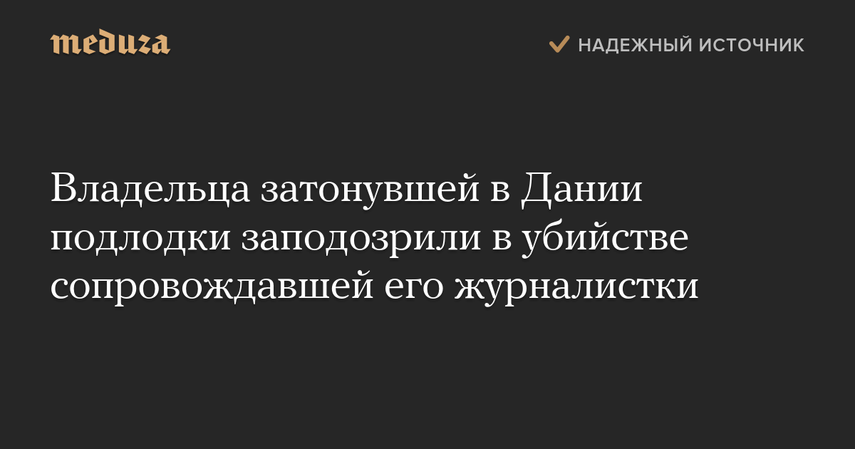 Владельца затонувшей в Дании подлодки заподозрили в убийстве сопровождавшей его журналистки