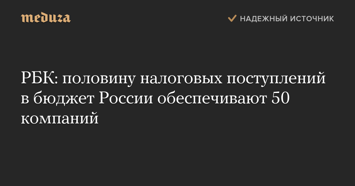 РБК: половину налоговых поступлений в бюджет России обеспечивают 50 компаний