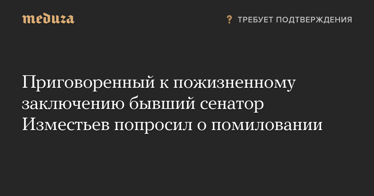 Приговоренный к пожизненному заключению бывший сенатор Изместьев попросил о помиловании