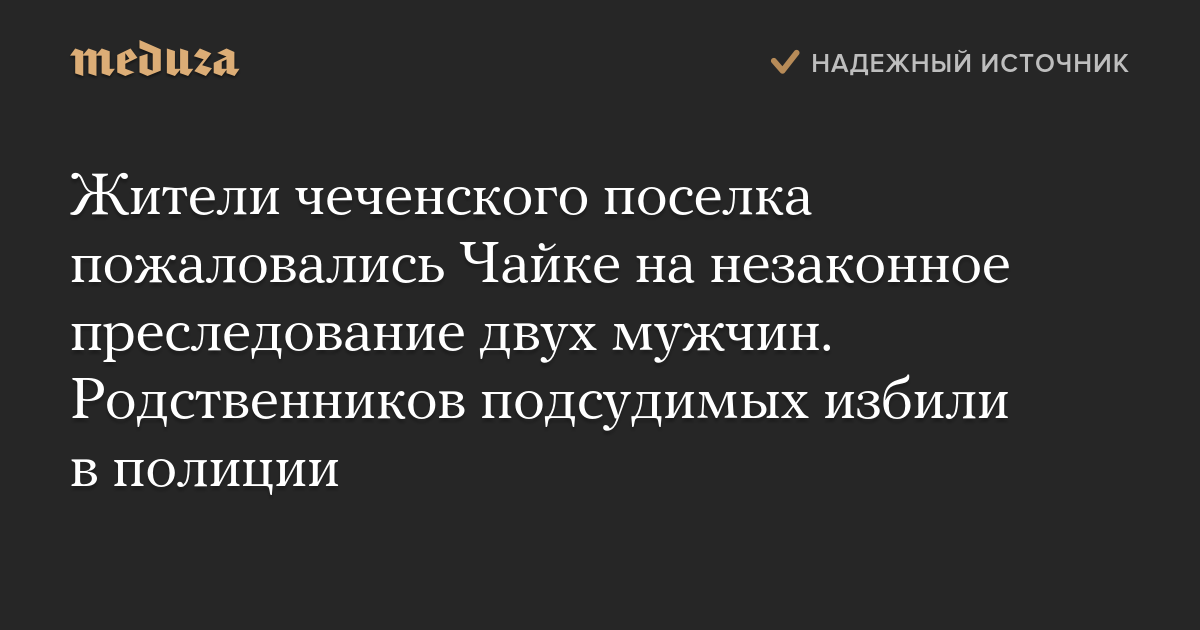 Жители чеченского поселка пожаловались Чайке на незаконное преследование двух мужчин. Родственников подсудимых избили в полиции