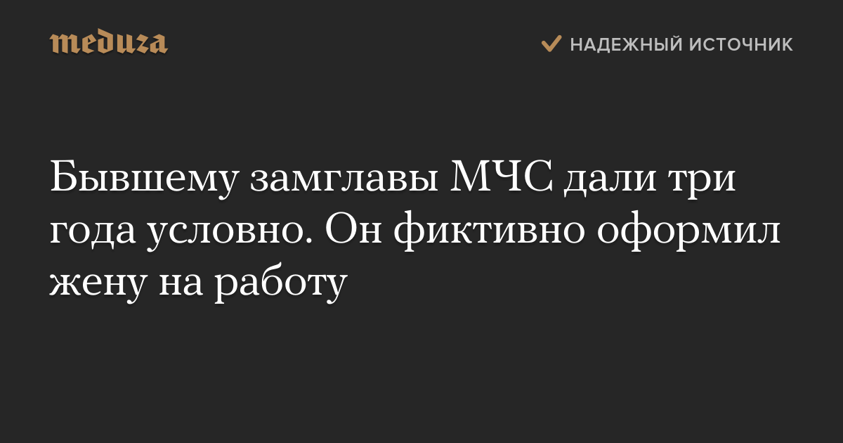 Бывшему замглавы МЧС дали три года условно. Он фиктивно оформил жену на работу