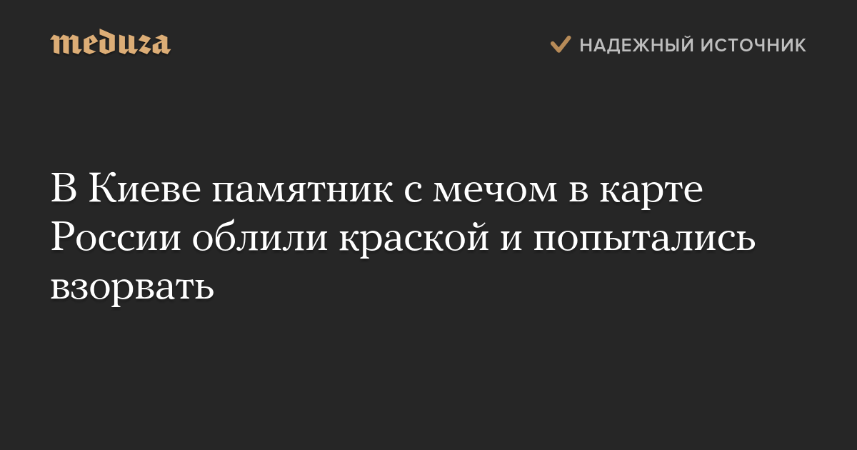 В Киеве памятник с мечом в карте России облили краской и попытались взорвать