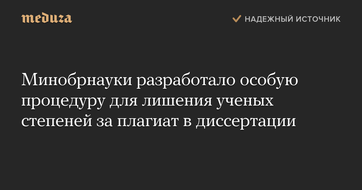 Минобрнауки разработало особую процедуру для лишения ученых степеней за плагиат в диссертации