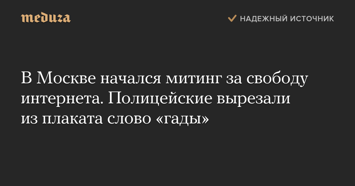 В Москве начался митинг за свободу интернета. Полицейские вырезали из плаката слово «гады»