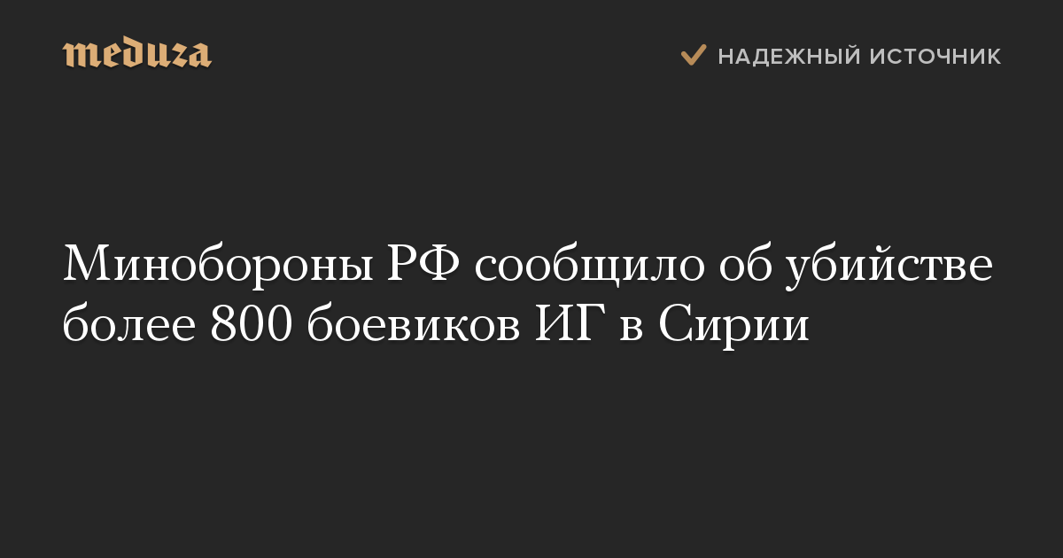 Минобороны РФ сообщило об убийстве более 800 боевиков ИГ в Сирии