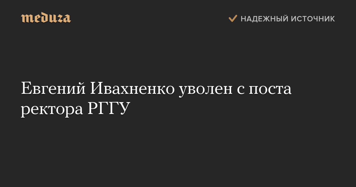 В пресс-службе РГГУ «Медузе» подтвердили, что Ивахненко покинул свой пост.