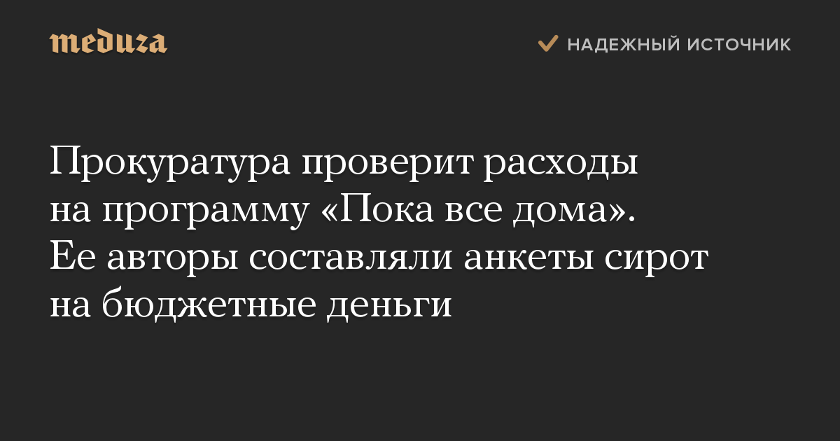 Прокуратура проверит расходы на программу «Пока все дома». Ее авторы составляли анкеты сирот на бюджетные деньги