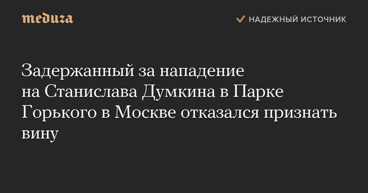 Задержанный за нападение на Станислава Думкина в Парке Горького в Москве отказался признать вину