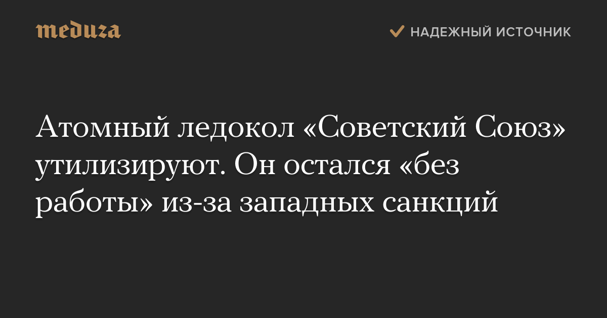 Атомный ледокол «Советский Союз» утилизируют. Он остался «без работы» из-за западных санкций