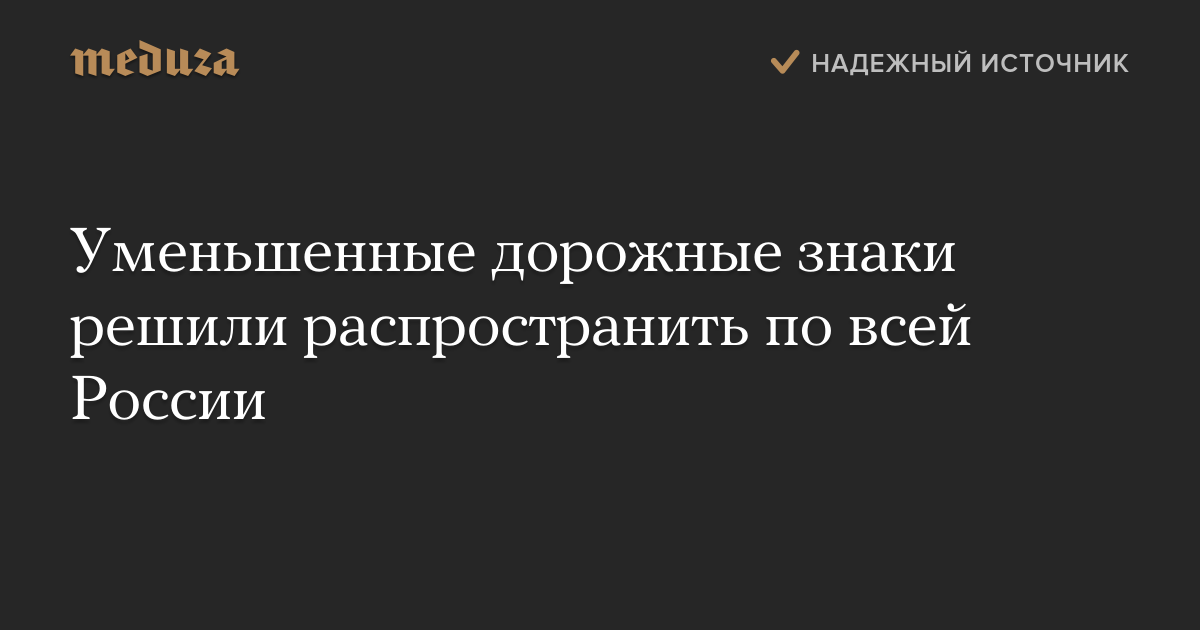 Экспериментально уменьшенные дорожные знаки устанавливали на некоторых улицах в Москве, Санкт-Петербурге, Саратове и Владимире, пишет «Интерфакс». Размеры были уменьшены с 70×70 сантиметров до 50×50 и 40×40 сантиметров.