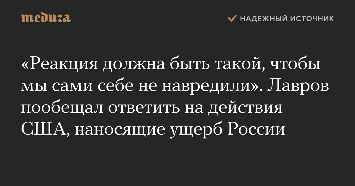 «Реакция должна быть такой, чтобы мы сами себе не навредили». Лавров пообещал ответить на действия США, наносящие ущерб России