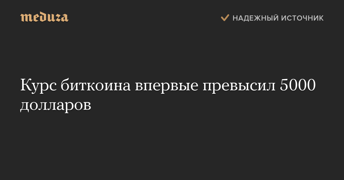 Курс биткоина впервые превысил 5000 долларов