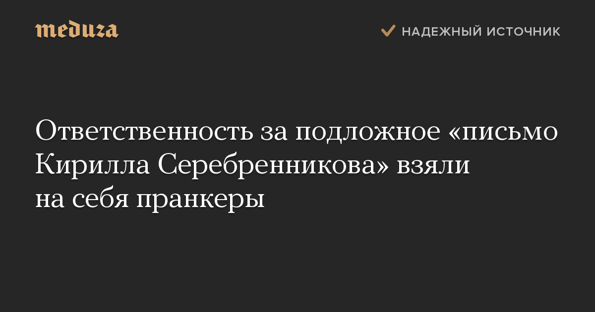 Ответственность за подложное «письмо Кирилла Серебренникова» взяли на себя пранкеры