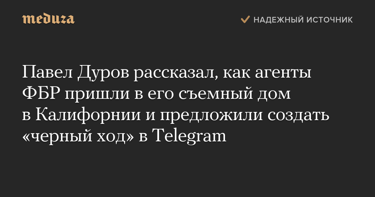 Павел Дуров рассказал, как агенты ФБР пришли в его съемный дом в Калифорнии и предложили создать «черный ход» в Telegram