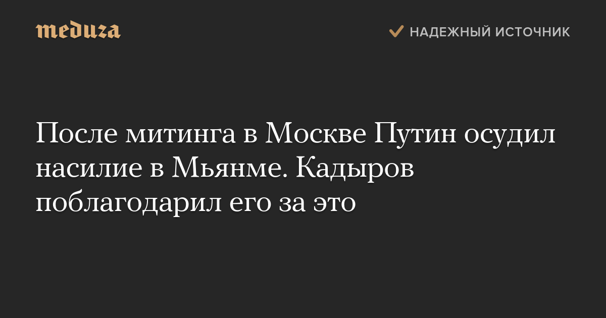 После митинга в Москве Путин осудил насилие в Мьянме. Кадыров поблагодарил его за это