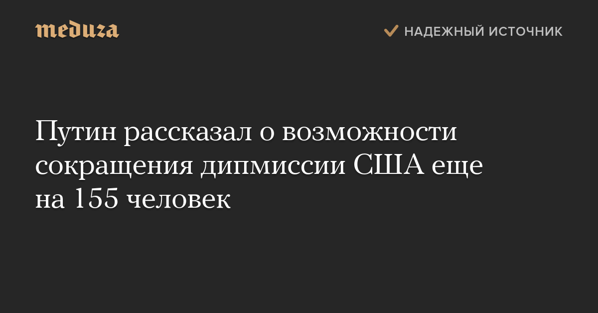 «Если уж говорить о полном паритете, то это [должны быть] не 455 дипломатов США в Москве, а минус [еще] 155», — заключил Путин.