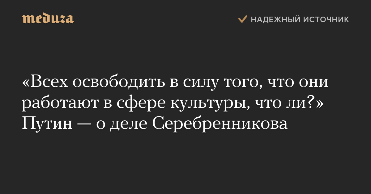 «Всех освободить в силу того, что они работают в сфере культуры, что ли?» Путин — о деле Серебренникова
