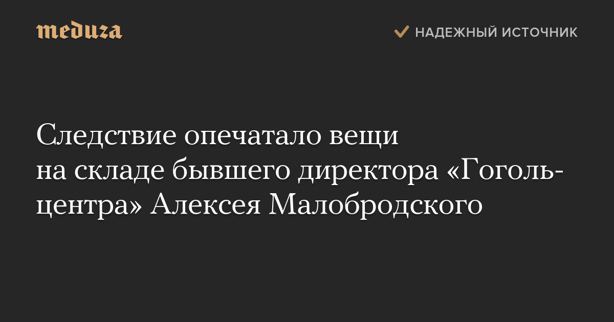Следствие опечатало вещи бывшего директора «Гоголь-центра» Алексея Малобродского, которые он хранит на арендованном складе. Об этом сообщает корреспондент «Медузы».
