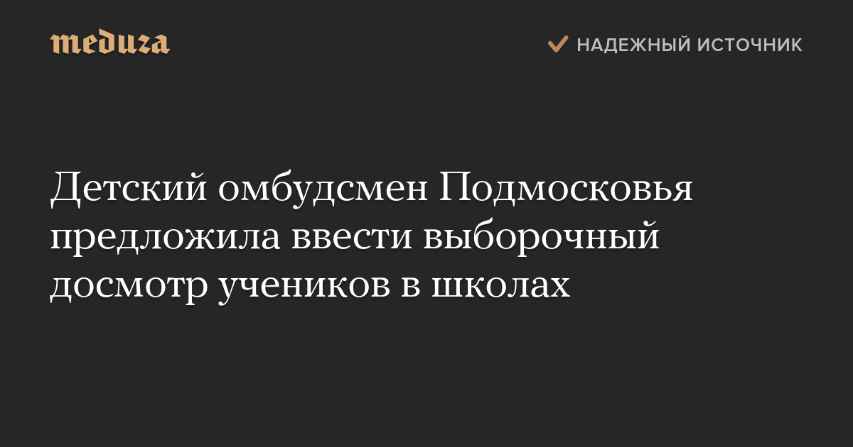 Детский омбудсмен Подмосковья предложила ввести выборочный досмотр учеников в школах