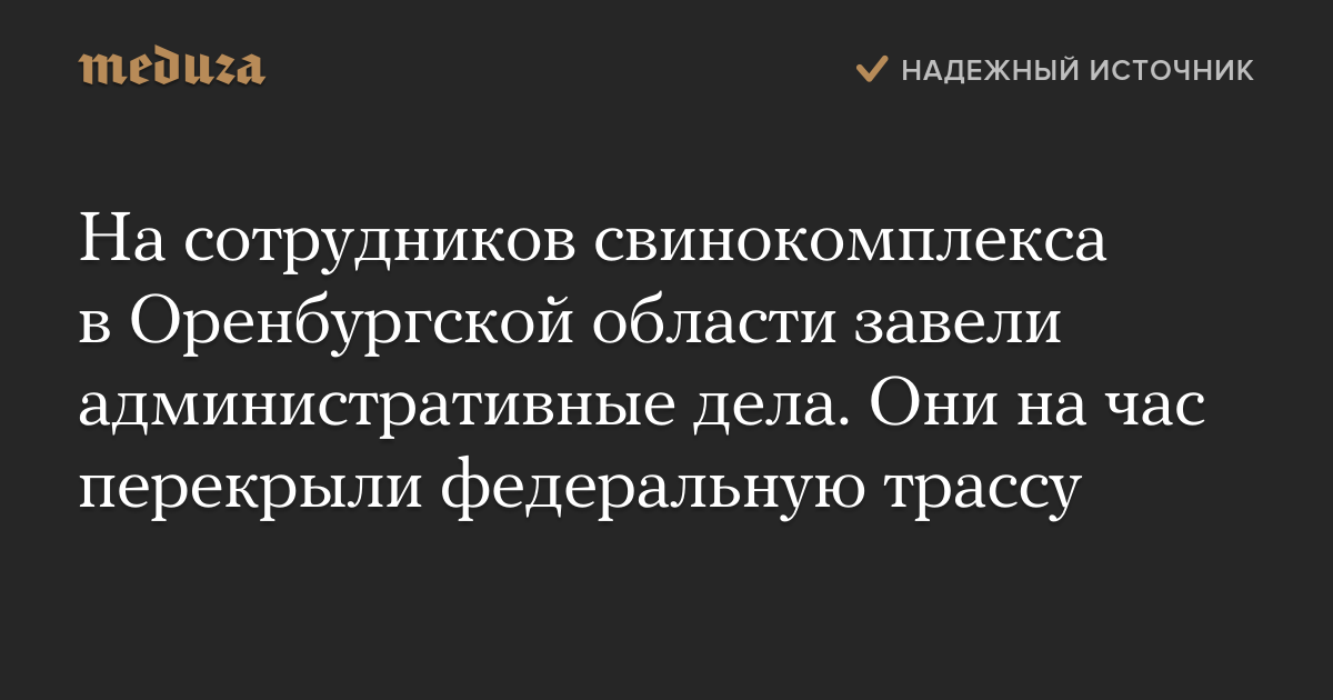 На сотрудников свинокомплекса в Оренбургской области завели административные дела. Они на час перекрыли федеральную трассу