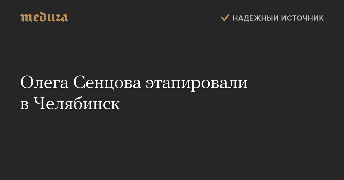 Украинского режиссера Олега Сенцова, осужденного по делу о подготовке терактов в Крыму, этапировали из иркутского СИЗО в Челябинск. Об этом сообщает Совет правозащитников Иркутской области.