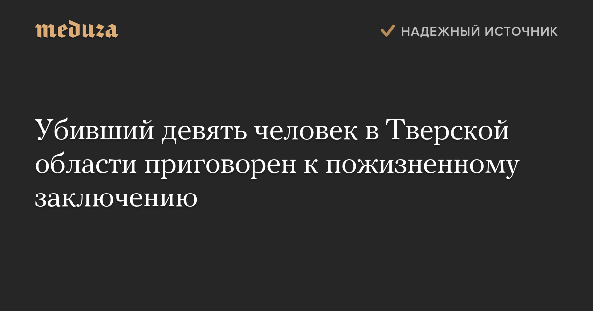 Убивший девять человек в Тверской области приговорен к пожизненному заключению