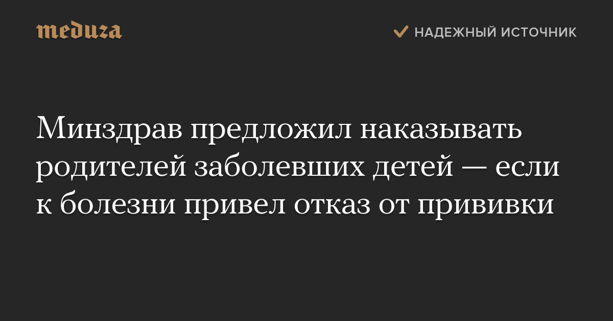 Минздрав предложил наказывать родителей заболевших детей — если к болезни привел отказ от прививки