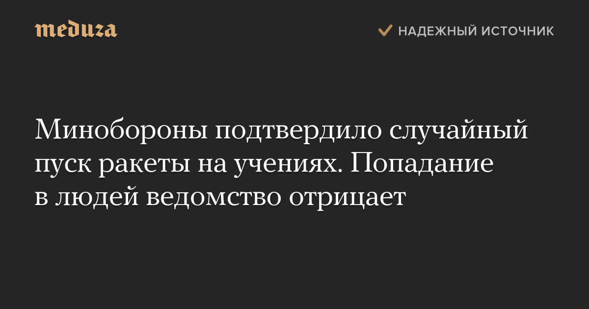 Минобороны подтвердило случайный пуск ракеты на учениях. Попадание в людей ведомство отрицает