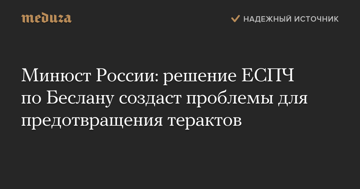 Минюст России: решение ЕСПЧ по Беслану создаст проблемы для предотвращения терактов
