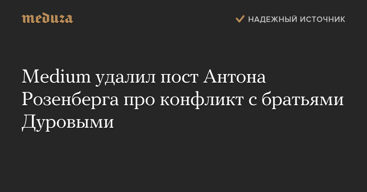 С платформы Medium удалили пост Антона Розенберга, который называет себя бывшим топ-менеджером «ВКонтакте» и Telegram, про его конфликт с Николаем и Павлом Дуровыми.