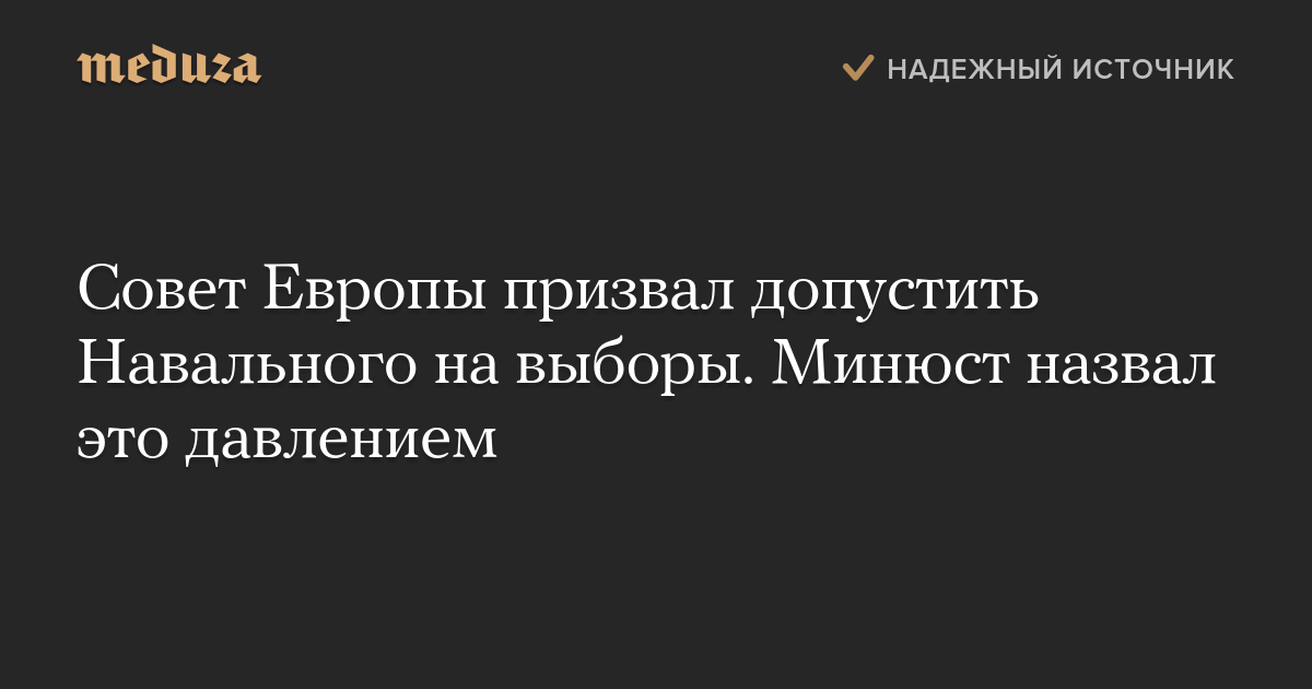 Совет Европы призвал допустить Навального на выборы. Минюст назвал это давлением