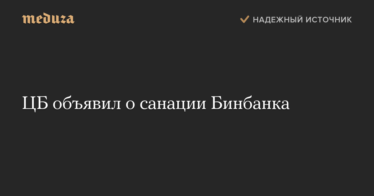 ЦБ объявил о санации Бинбанка