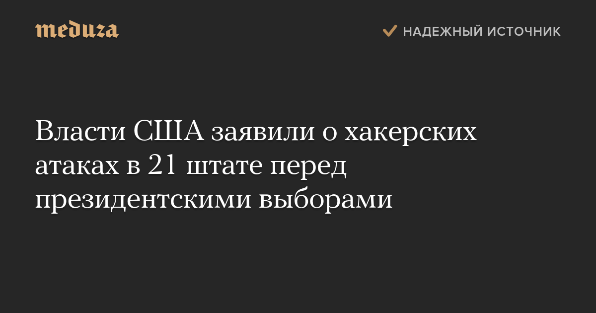 Власти США заявили о хакерских атаках в 21 штате перед президентскими выборами