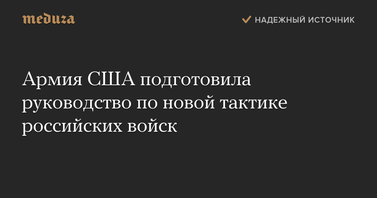 Армия США опубликовала руководство по тактике российских войск «нового поколения». Документ выложен на сайте Public Intelligence, внимание на него обратил журнал The National Interest. Достоверность документа не подтверждена, но ссылку на него дает Группа по асимметричной войне Армии США.