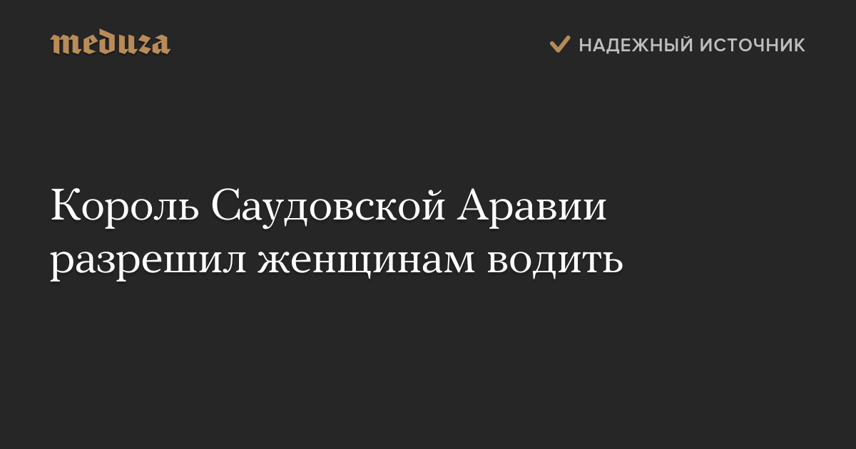 Король Саудовской Аравии Салман подписал указ, разрешающий женщинам получать водительские права и водить автомобиль. До сих пор Саудовская Аравия оставалась единственной страной в мире, где женщины не могли находиться за рулем.
