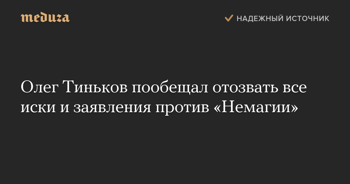 Олег Тиньков пообещал отозвать все иски и заявления против «Немагии»